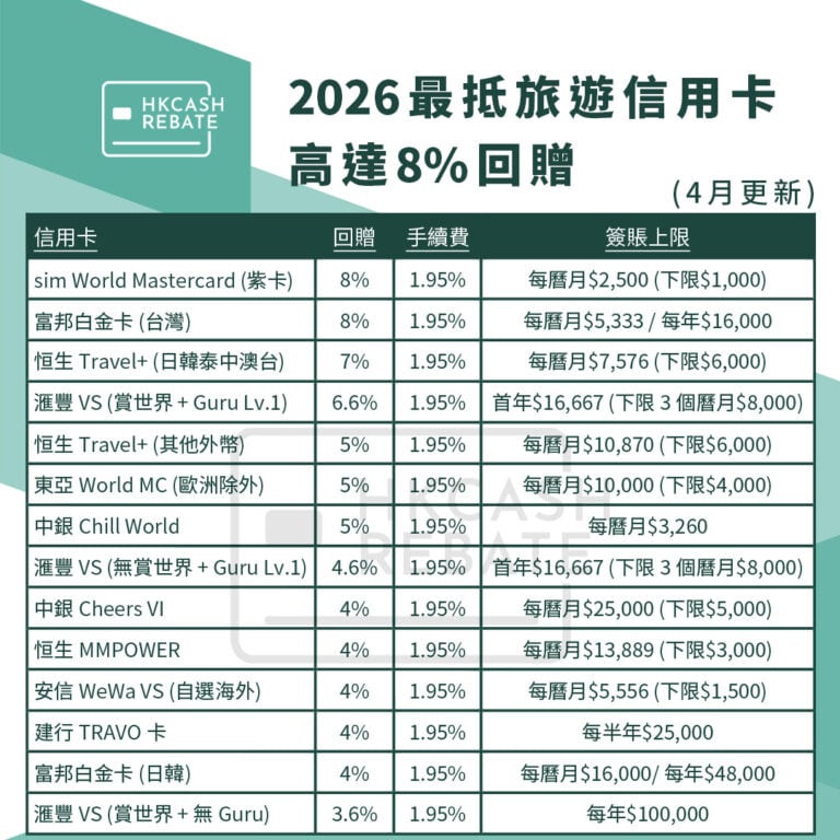 ![[海外簽賬信用卡攻略] 2026旅行信用卡比較!外幣簽賬回贈/手續費](https://hkcashrebate.com/wp-content/uploads/2026/03/Overseas2-768x768.jpg)