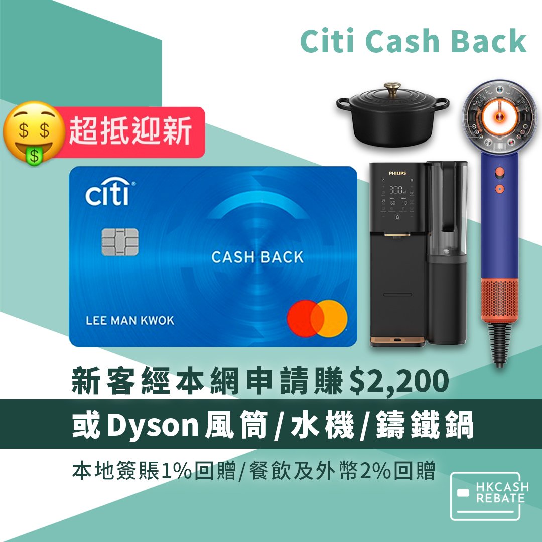 - 如果本身未有Citi信用卡,小編會建議開咗Citi Cash Back先,因為個獎賞仲抵,然後等批咗卡再上過嚟開返呢張卡。