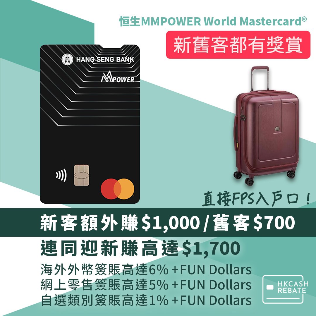 而家開滙豐VS,只要簽$8,000就可以賺到$800迎新/$200迎舊!詳細可以睇返篇滙豐VS攻略。如果未夠年薪開滙豐VS($24萬),都可以開住張滙豐easy卡玩住先,自選類別簽賬都有2.4%回贈,仲可以搏佢upgrade!