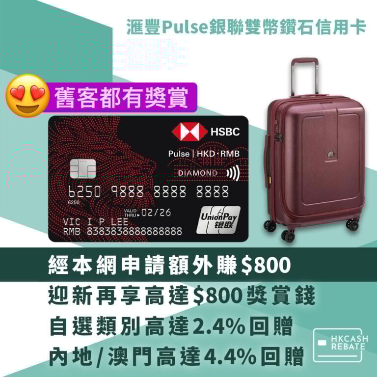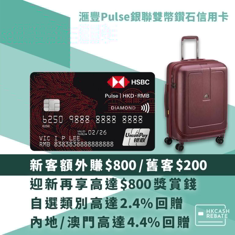 滙豐HSBC Pulse銀聯雙幣鑽石卡 – 內地簽賬高達4.4%回贈!迎新/年費全攻略